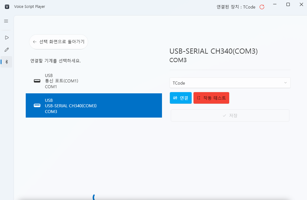 Launch VoiceScriptPlayer and click Device Connection from the left menu.